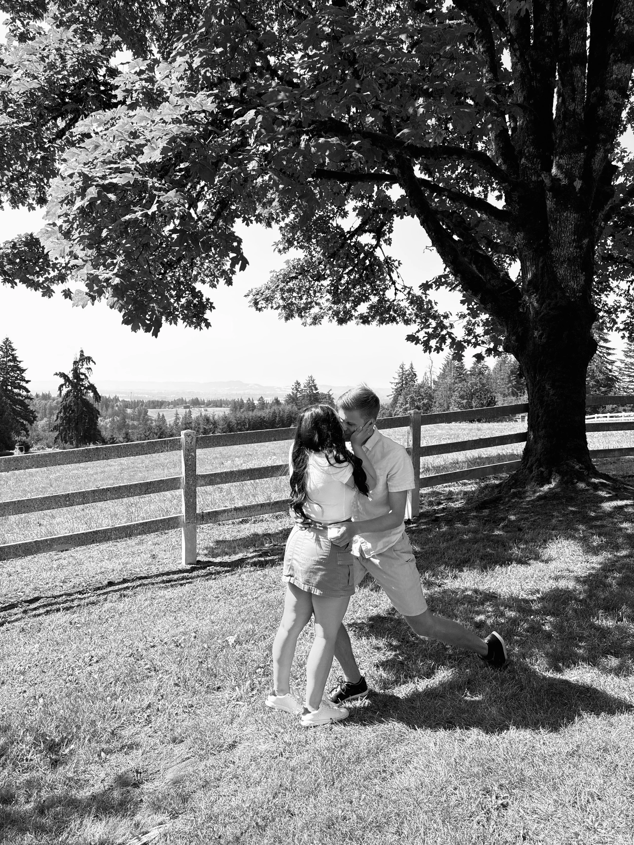 Jordan made sure to keep Nickey on her toes. While she was convinced he’d propose on their next trip to Europe, he had other plans. What began as a casual double date at their favorite park overlooking the hills turned into the perfect moment beneath a large maple tree where Jordan asked Nickey to marry him.